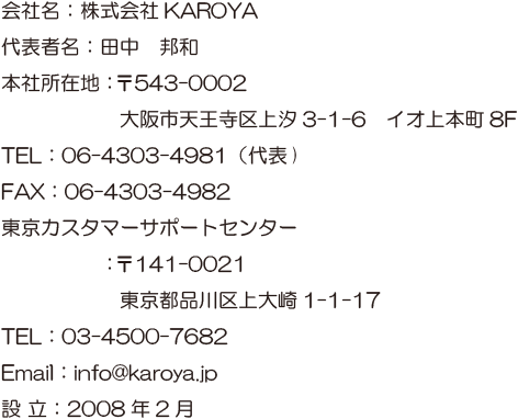 株式会社KAROYA(以下「弊社」)は、お客様からの信頼を第一と考え、お客さま個人に関わる情報を正確、かつ機密に取り扱うため、下記の方針に基づき個人情報を取り扱います。